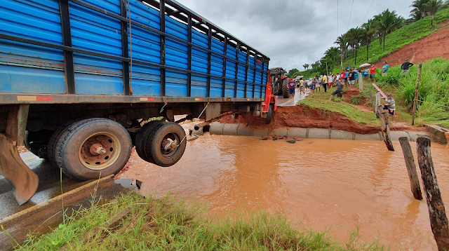 Neste momento a equipe da Secretaria de obras de Esperantinópolis se encontra no local, tentando viabilizar a passagem para que o tráfego de veículos e pedestre se restabeleça.