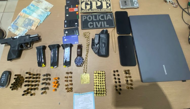 Na ocasião,os policiais civis ainda apreenderam dois automóveis, duas pistolas G2C, aproximadamente 90 munições de calibre 9mm e 38, porções de maconha e cocaína e cerca de 560 reais em espécie.